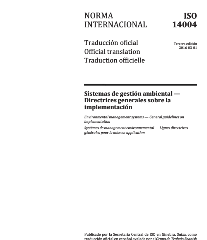 NTP-ISO 14004:2016: Sistemas de gestión ambiental. Directrices generales sobre la implementación.